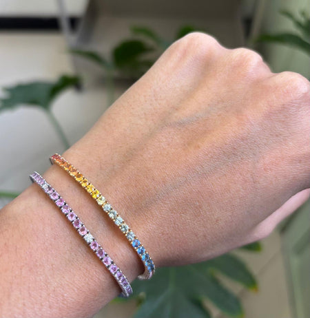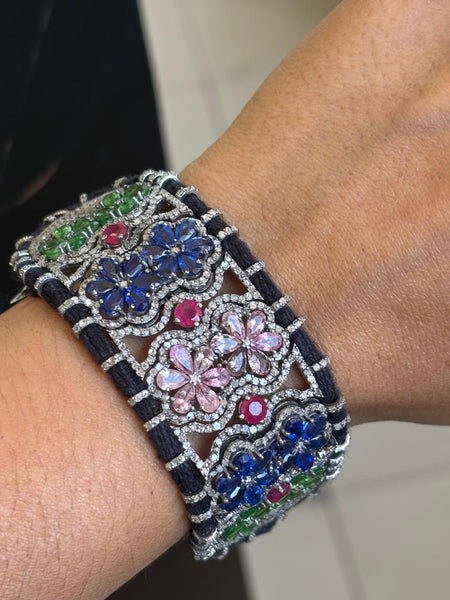 Pulsera hilo y plata rodizada .925 con piedras preciosas zafiros, rubíes y diamantes naturales