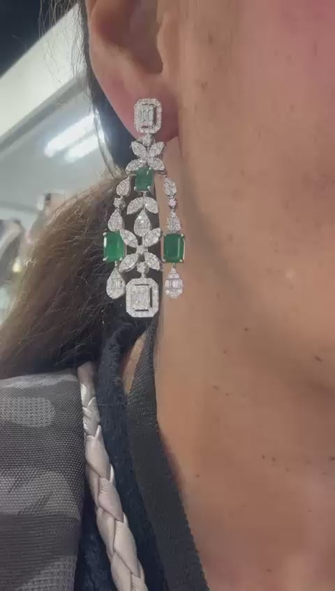Aretes largos esmeraldas brillante ✨