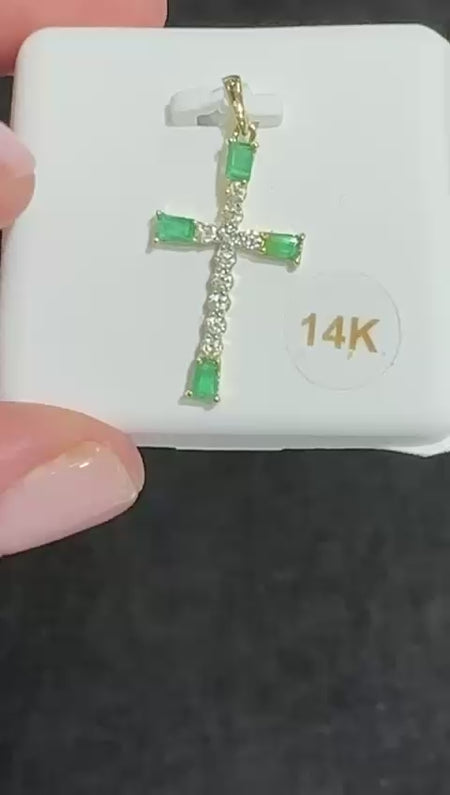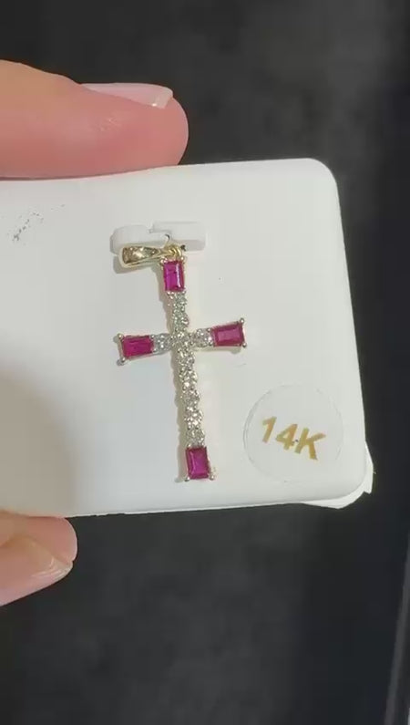 Charm cruz rubie-esmeralda oro 14k. 1/4 cts.