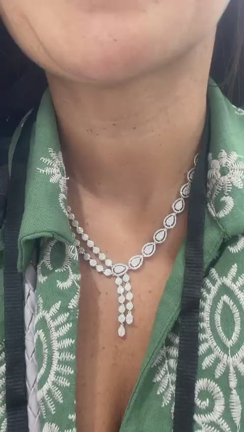 Gargantilla oro 14k corbatin doble con diamantes naturales brillantes