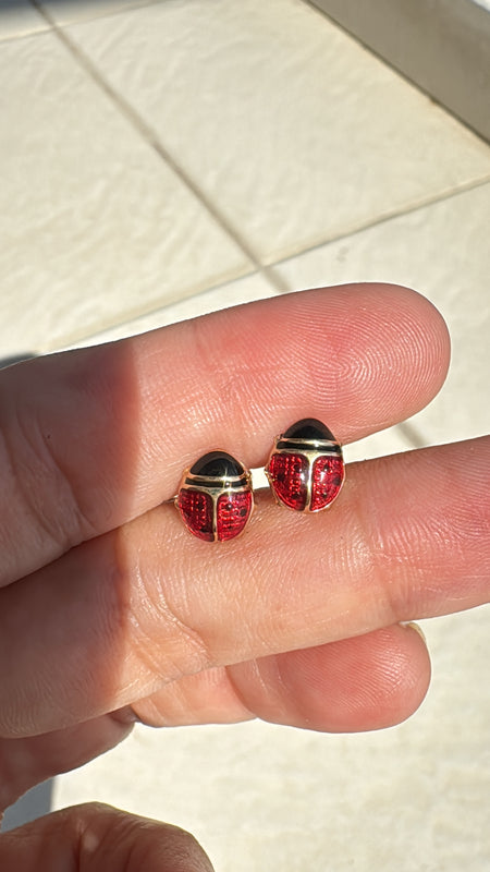 Broquel oro amarillo 10k catarina esmaltada