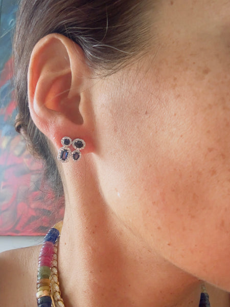 Broquel oro amarillo 14k con rubíes , zafiros (agotado)o esmeraldas (agotado) naturales y diamantes