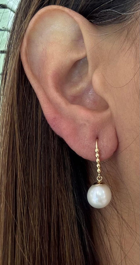Arete largo oro 10k con perla natural cultivada
