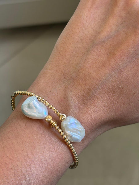 Aro flexible oro 18k con perla barroca natural